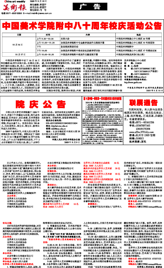 联系单位:中国美术学院附中80周年校庆办公室
