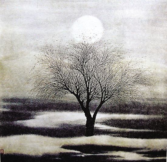 曹广福 夕阳 国画