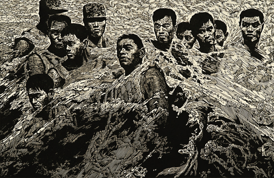 武海成 堤 木刻版画 62×96cm 1998年