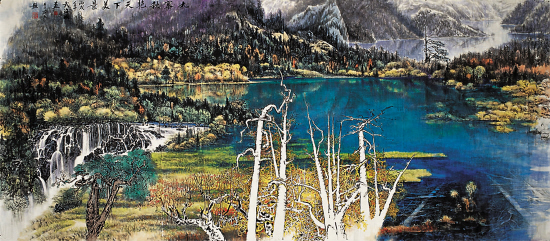武海成 九寨秋艳天下美景 中国画 220×510cm 2006年