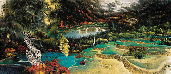 武海成 黄龙胜景人间瑶池 中国画 220×510cm 2006年