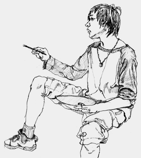 左边这幅作品的动态把握生动,画得也较流畅,在评卷时会有较好的成绩。可惜作者还是不太了解人体结构,衣服一遮盖身体,表现上就容易出问题:臀部偏小,右腿衔接骨盆的位置显然过高了点。