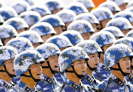 国庆阅兵分列式中的海军陆战队方队