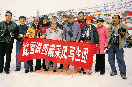 黄土画派画家在海拔5000米以上的米拉山口采风
