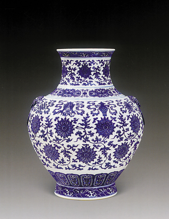 1823清乾隆 青花八宝纹铺首尊 H:49.2cm