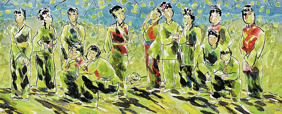 林逸鹏 云南印象·阳光下的姐妹们 145×368cm 2004年