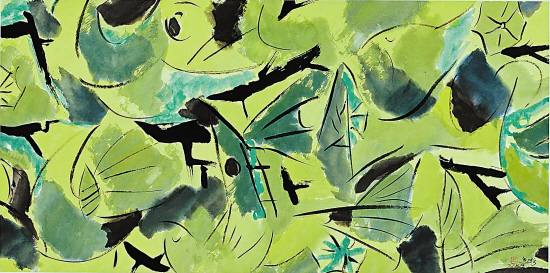 林逸鹏 云南印象·群鸟鸣翠 69×138 cm 2004年