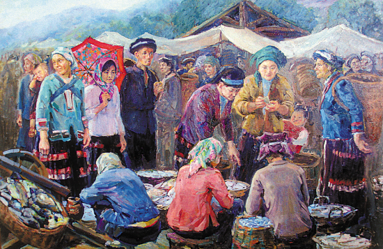 张碧云 集市 布面油画