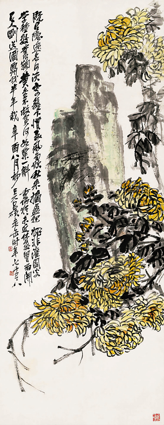 吴昌硕 东篱佳色 立轴 设色纸本 1921年 139×53.4cm估价:150000-200000