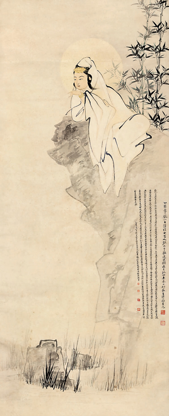 张大千画、张善孖题 水月观音 立轴 设色纸本 1936年 135×55cm 估价:550000-650000