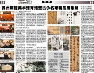 10月18日,一座矗立在苏州金鸡湖畔的古典建筑突然间生发出璀璨夺目的光辉。这一天,苏州画院美术馆开馆暨古今名家精品展在这里盛大举行。开馆仪式上,全国政协副主席李金华与江苏省委常委、苏州市委书记蒋宏坤为苏州画院美术馆揭牌。全国政协副主席李金华,中国文联副主席、中国美术家协会主席刘大为,中国美术家协会副主席、国家画院院长杨晓阳,中国传媒大学党委书记李培元,江苏省委常委、苏州市委书记蒋宏坤,江苏省政协副主席包国新,苏州市委副书记、市长阎立,江苏省政协原副主席孙安华,苏州市政协主席王金华,苏州市委常委、宣传部长徐国强,苏州市委常委、秘书长王少东,苏州市委常委、园区工委书记马明龙,苏州画院院长沈威峰共同为开馆剪彩。中央数字电视书画频道董事局主席王平,北京画院常务副院长李迎春,北京画院艺委会主任李小可,北京画院美术馆馆长吴洪亮等出席了苏州画院美术馆开馆仪式。全国政协副主席、中国文联主席孙家正特意为苏州画院美术馆开馆展览题字“古今集粹、美不胜收”。