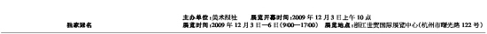 展览时间:2009年12月3日—6日(9∶00—17∶00) 展览地点:浙江世贸国际展览中心(杭州市曙光路122号)