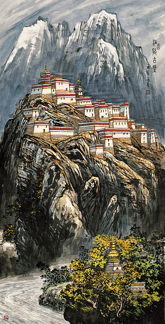苗重安 江孜古堡 136×68cm 2007年 纸本