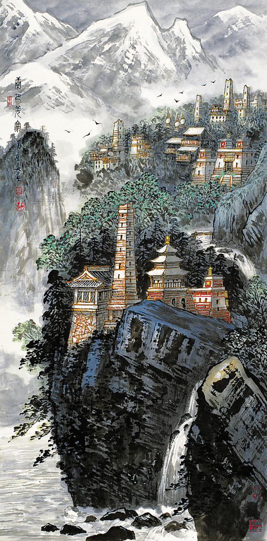 苗重安 康巴羌寨138×69cm 2007年 纸本