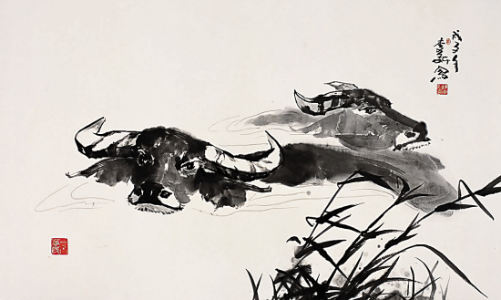 陈李新 双牛戏水