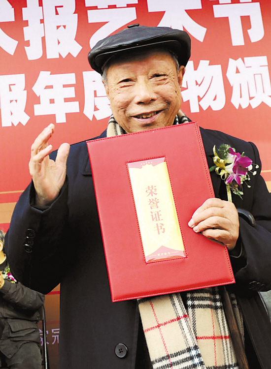 2009美术报年度人物获得者代表王伯敏先生领奖。