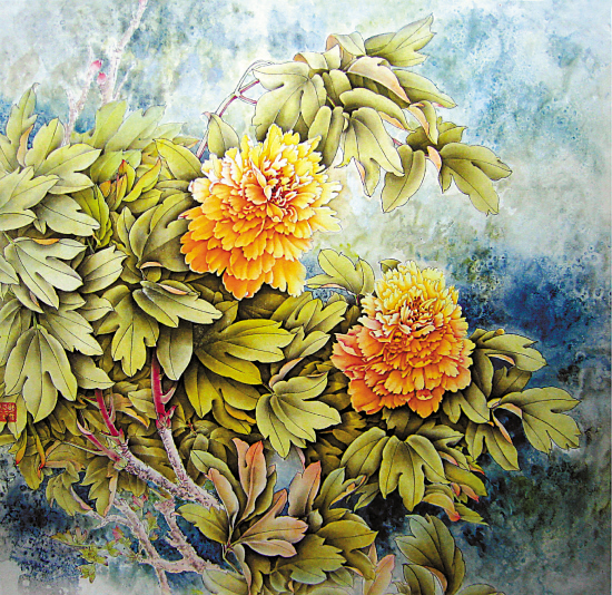 瞿胜兰 牡丹系列之一 纸本设色 64.5×66cm