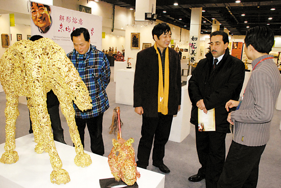 意大利艺术家联盟主席吉利(右二)参观朱炳仁作品《头的悲哀》
