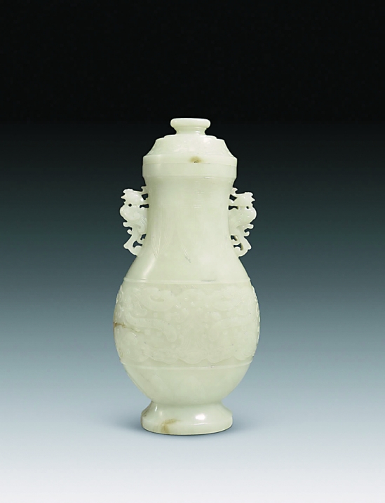 清乾隆 白玉雕饕餮纹双夔凤耳盖壶