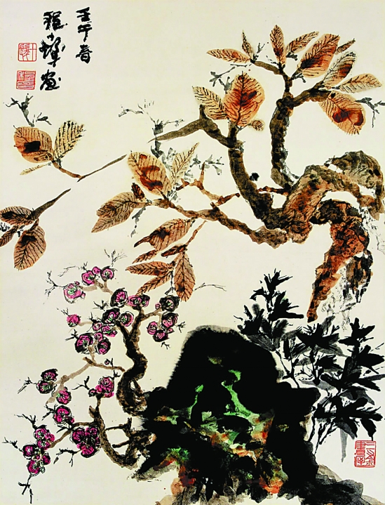 程十发 三清图 立轴设色纸本 57×43cm
