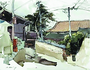 在这次研修活动众多的学术座谈会议和访问考察之余,我做了很多实地考察水彩写生,以此记录来加深我对日本考察研修的感受。这些作品也成为我8月在日本新瀉市民会馆举办个人画展的一部分内容,它应该是我这次学术研修活动最有价值的一份礼物和纪念。