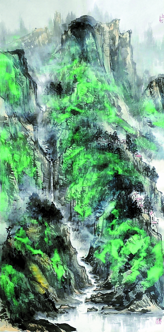 顾大明 山居图136×68cm