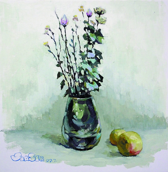 贾森(广东珠海) 寂寞的瓶花 油画