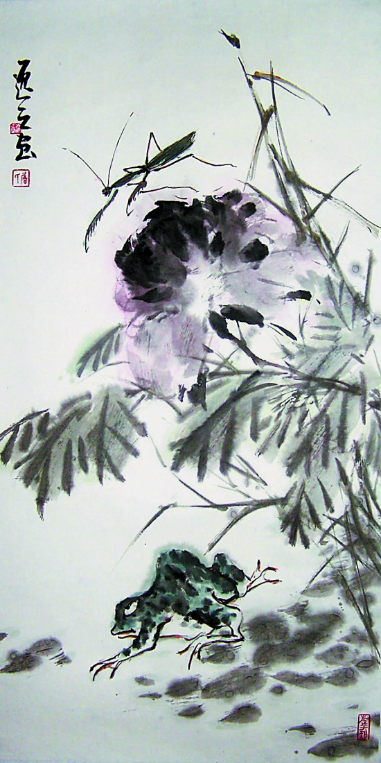 屠志炜(浙江绍兴) 螳螂在后 中国画
