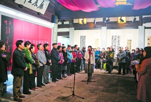本报宁波讯 记者 蔡树农 3月1日上午,“红颜墨痕”展暨《宁波市女书法家作品集》首发式在宁波市镇明路月湖群星展厅开幕。出席开幕式领导及嘉宾有:宁波市人大常委会原主任陈勇女士,宁波市人大常委会副主任、工商联主席崔秀玲女士,宁波市政协副主席、文联主席傅丹女士,浙江省女书协主席吴莹女士,浙江省女书协副主席李军女士,宁波市妇联主席伊敏芳女士,宁波市委宣传部副部长王桂娣女士,宁波市群艺馆馆长胡军女士,宁波市美术家协会主席何业琦,宁波市书协原主席周律之先生,宁波市书协原主席陈启元先生,宁波市女书法家协会名誉主席王蕊芳女士,宁波市书法家协会副主席、宁波市女书法家协会名誉主席毛燕萍女士。开幕式一开始宁波市妇联主席伊敏芳女士就热情洋溢地致开幕辞,浙江省女书法家协会主席吴莹女士讲话,其间宁波市女书协主席周芳女士精湛而激昂的开幕词引来现场同仁们一阵又一阵的掌声,最后宁波市政协副主席、文联主席傅丹女士宣布“红颜墨痕”展暨《宁波市女书法家作品集》首发式开幕,这时场外观众也聚集了两百余人纷纷来参观宁波市女书法家作品。