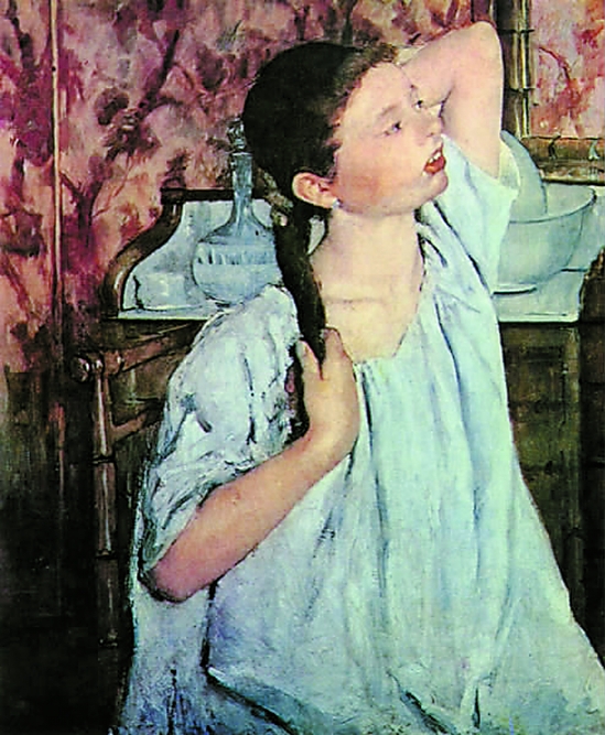 卡萨特 梳头的女孩