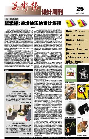 在毕学峰的办公室里有一个木头做的图表。图表始于“平面设计”,经由“概念、分析、沟通、定位、逻辑、意念、插图、摄影、图形、字体、艺术、智慧、创新”最终到达“快乐”。毕学峰说“设计本应是一件快乐的事情,然而在工作中要解决各式各样的问题,似乎忘记了我们最终的目的”。毕学峰通过这样的方式来不断地提醒自己保持最初的热情和初衷,享受设计的乐趣。设计本是一个枯燥的活,但当不断有新的想法或构思涌现时,他会在这种状态中“自我陶醉”。而当自己的作品得到别人的认同或专业性的奖赏这也是一件可以“暗自高兴的事”。毕学峰用他的设计哲学诠释着他“追求快乐的设计旅程”。