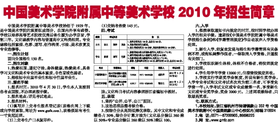 中国美院附中 杭州市转塘镇中国美术学院象山中心校区 310024 0571-86696225 赵艳华 2010年5月2日(专业)