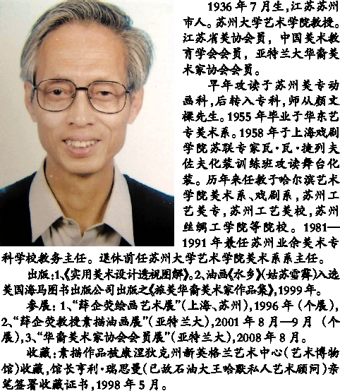 1936年7月生,江苏苏州市人。苏州大学艺术学院教授。江苏省美协会员,中国美术教育学会会员,亚特兰大华裔美术家协会会员。