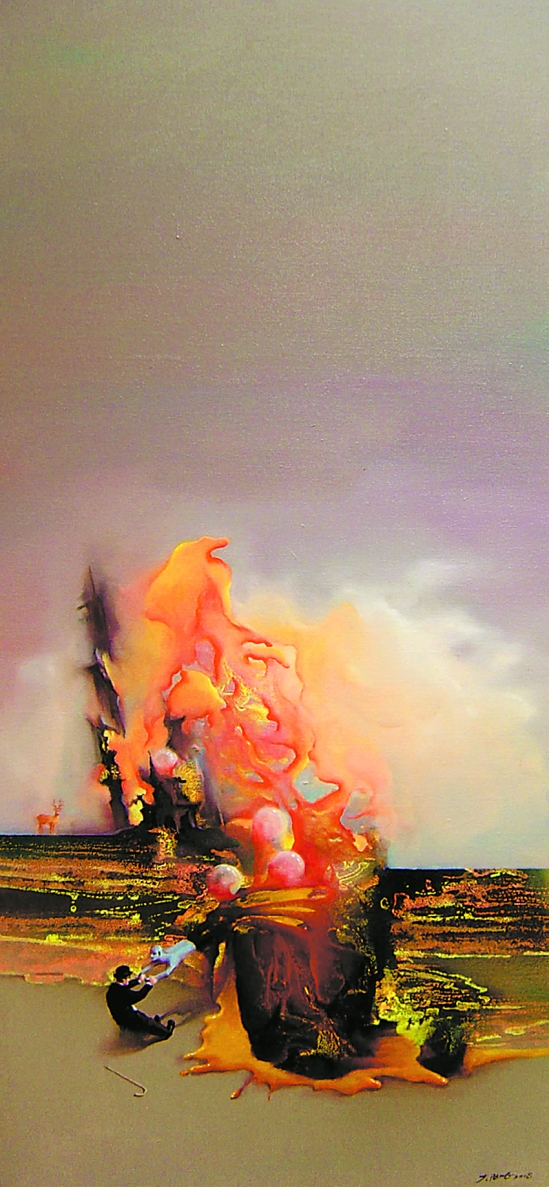 姬鹏 寓言系列之一 180×90cm 布面油画 2008年