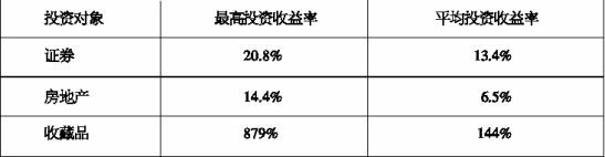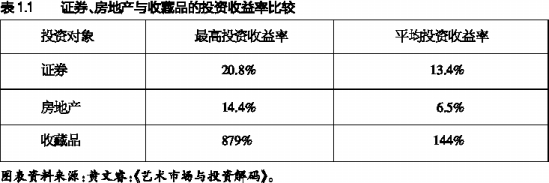 表1.1 证券、房地产与收藏品的投资收益率比较