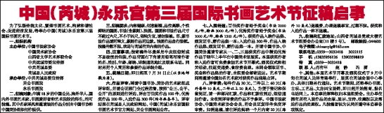 中国(芮城)永乐宫第三届国际书画艺术节征稿启事