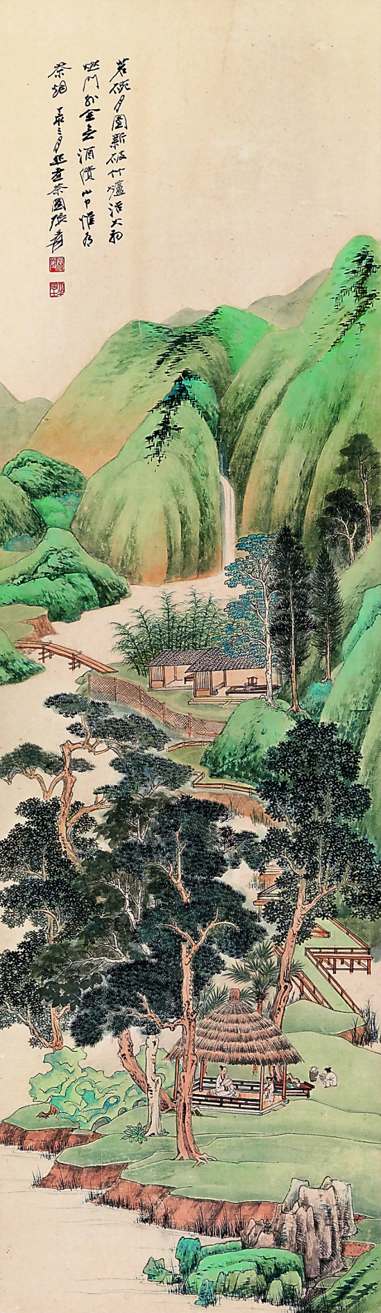 张大千 煮茶图 镜框 1947年作 99.4×29.2cm