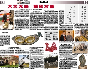 据悉,此次艺术展是继两岸在政治、经济互动后第一次由两岸艺术家联手举办的重要民间文化交流活动。展览共展出66件作品,其中两位大师独立创作作品每人30件,另外6件由两位大师共同创作而成。以艺术家对中华文化的传承为背景,展示了他们艺术成长的过程,而两岸两代艺术家参与的“铜桥运台”和“水袖进京”故事的解密,又揭示了民间文化交流在两岸重大事件中扮演着独特与优秀的角色;作为当代两岸艺术创新的代表,朱炳仁的“解形熔意”、杨奉琛的“五行再生”也再一次向世界昭示了中华文化的博大精深和无穷魅力。