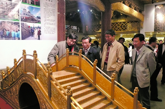 海协会常务副会长李炳才(左二)在视察展览筹备情况