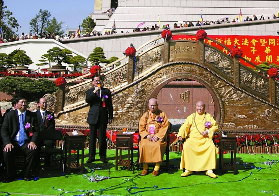 2007年12月22日,杭州灵隐寺将朱炳仁打造的“同源桥”作为海峡两岸和平交往的象征,赠送给台湾中台禅寺,国民党荣誉主席连战主持仪式。