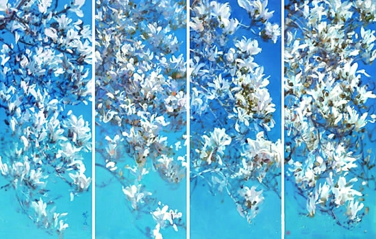 靳之林 白玉兰之三(四条幅) 布面油画
