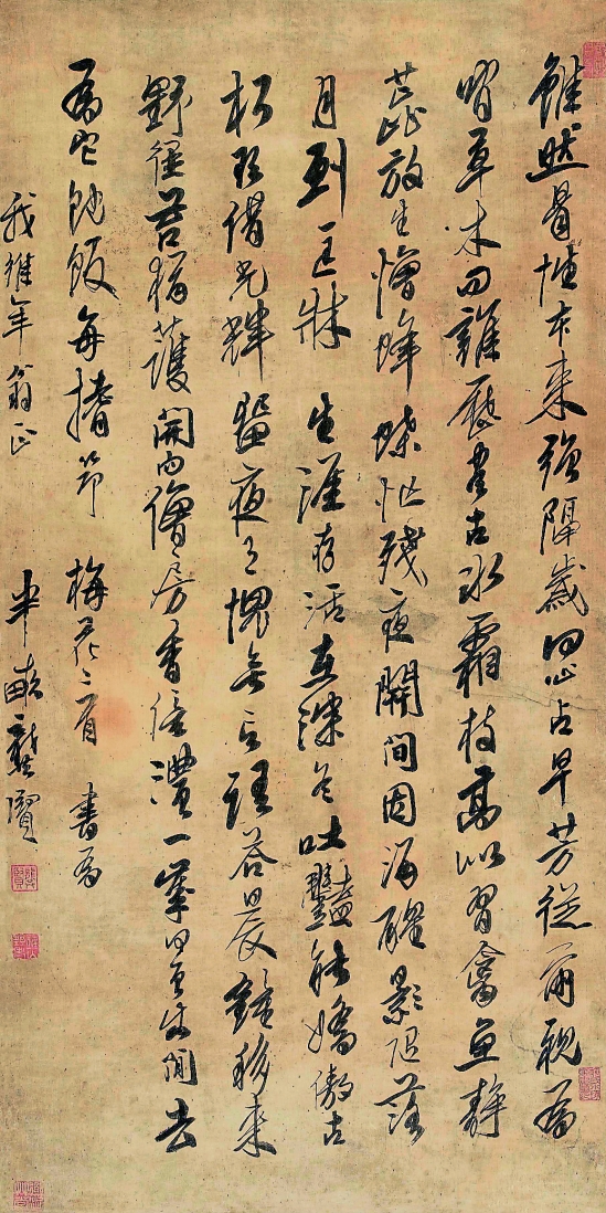 龚贤(1618-1689) 行书梅花诗二首 绫本立轴