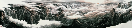 钟章法 日破云涛万里红(山水系列) 450×100cm