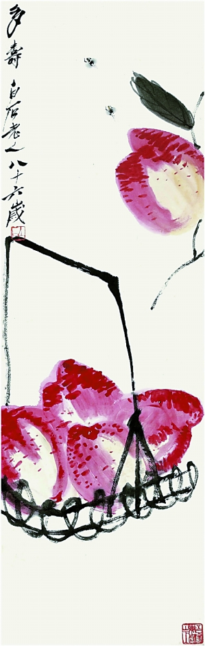 齐白石(1864—1957)多寿 镜片设色纸本 105×34 cm