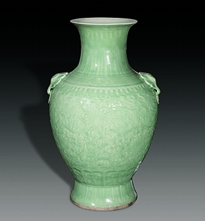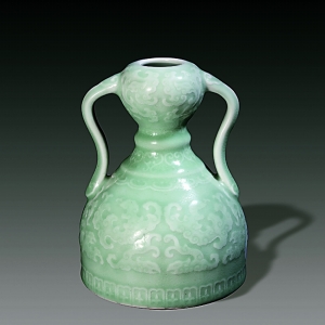 | 清·乾隆 粉青刻花兽耳瓶 估价1,000,000—1,500,000 |