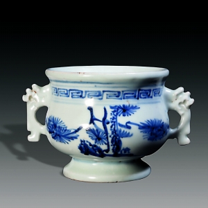| 明·宣德 青花松竹梅兽耳炉 高8.7cm 直径13.6cm 足7.1cm估价700,000—900,000 |