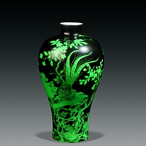 | 清·雍正 黑地绿彩花鸟纹梅瓶 高17cm估价500,000—600,000 |