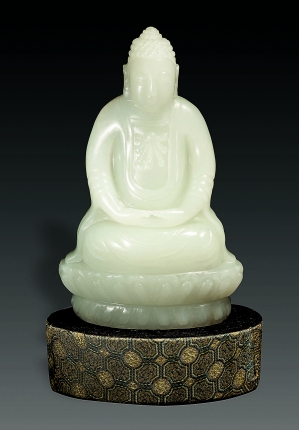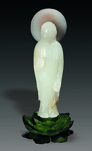 | 清·雍正 碧玉莲花底座如来佛 高13.5cm 估价350,000—400,000 |