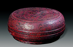 | 清雍正 龙纹漆盒 高21cm 直径52cm 估价300,000—400,000 |