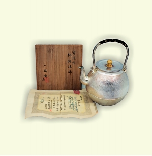 | 江户 梅泉造镶银游鱼铁壶 13.5×17cm 估价90000—120000 |